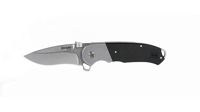 Krudo Vinix: The Vinix is a little more conventional in design, but it’s built for maximum strength in every detail. The N690 stainless blade is 3.5 inches long, turning on thrust-bearing washers. The stainless steel frame has G10 handle scales.