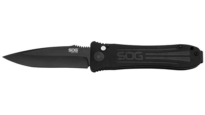 SOG Spec Elite II Auto: SOG is once again expanding its line of U.S.-made auto folders. One particular model that caught my eye was the Spec Elite II Auto, which is based on the earlier Pentagon folder. This model offers a 4-inch blade of AUS-8 stainless on an aluminum handle frame.