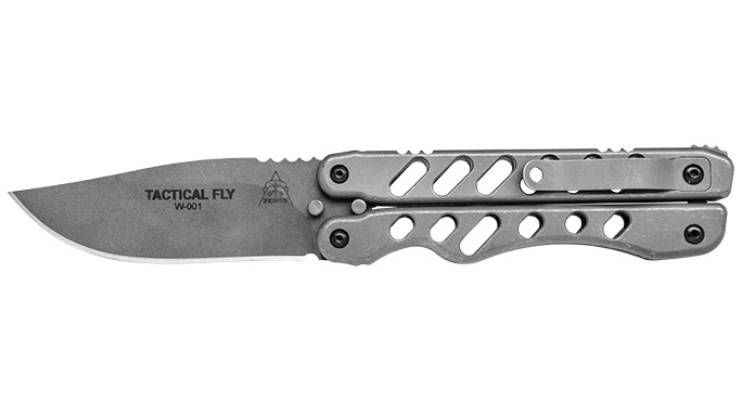 TOPS Tactical Fly: The Tactical Fly is an even more unusual folder for the company that combines a classic butterfly handle with a practical 4-inch blade made of 1095 carbon steel.