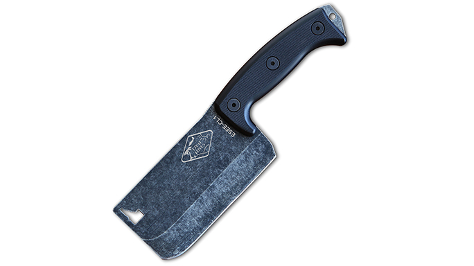 ESEE Cleaver: ESEE is well known for making reasonably priced, tough-as-nails survival knives, but this year the company pushed the envelope a little with its Cleaver and Tertiary models. The ESEE Cleaver uses a 1095 carbon- steel blade with a tactical black oxide finish mounted a G10 handle, and it comes with a leather sheath.