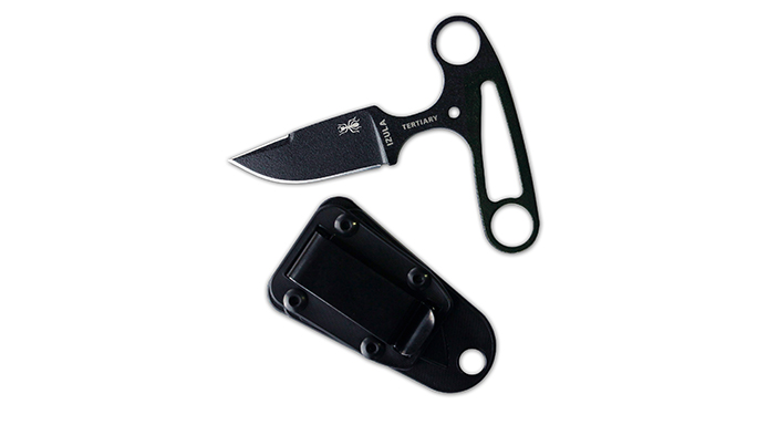 ESEE Tertiary: The Tertiary was designed by LEO Lee Smith as a weapon retention and ultra-close-quarters weapon. With even minimal training, anyone can use this as a straightforward punching and cutting blade well suited to emergency use. The 1095 carbon-steel blade is 2.5 inches long, and it is available with G10 handle scales.