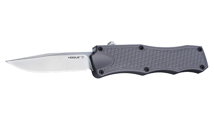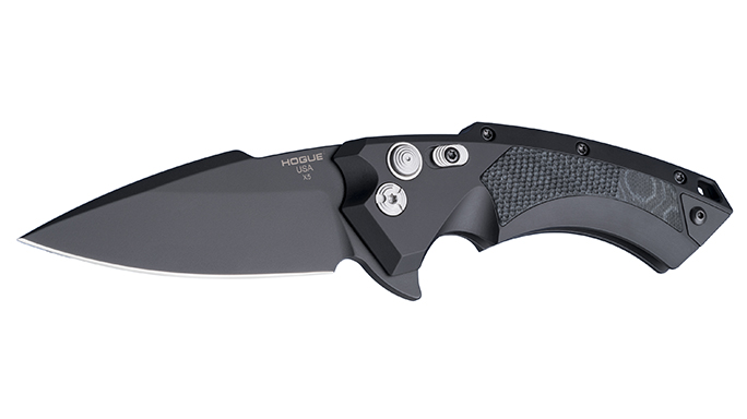 Hogue OTF: Once primarily thought of as a handgun grip company, Hogue now has a very extensive line of high-quality tactical blades. New models for 2017 include the OTF and the X5 folders. As you would expect from the name “OTF,” this is an out-the-front auto with a choice of a tanto or clip-point blade made of 154CM stainless. The handle body is aluminum.