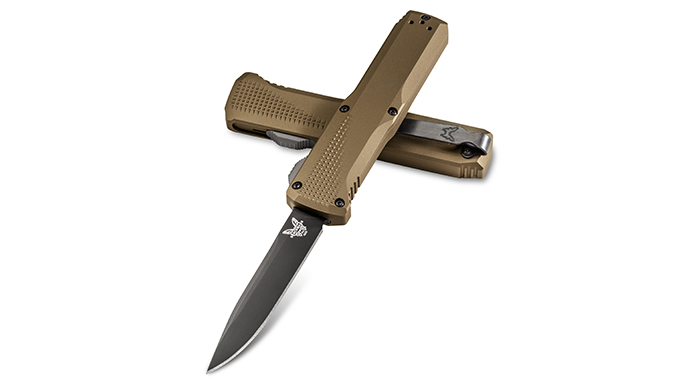 Benchmade 4600 Phaeton: Joining Benchmade’s family of other out-the-front (OTF) autos, the 4600 Phaeton is a more utilitarian 3.45-inch S30V drop point on an anodized aluminum handle frame.