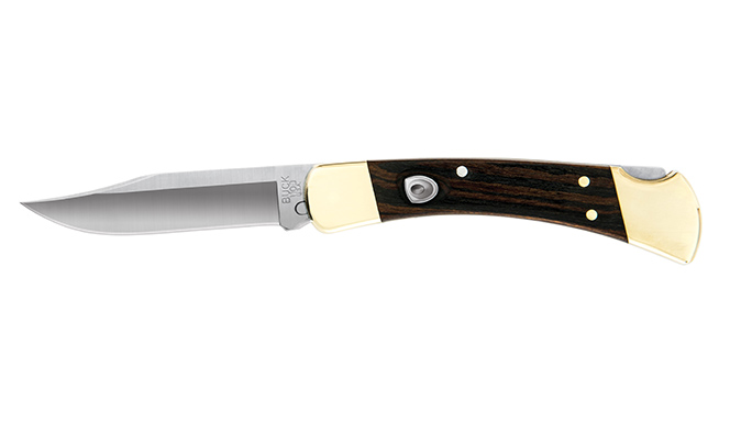 Buck Knives Model 110: As I mentioned earlier, you know automatic-opening folders have gone mainstream when Buck Knives starts offering a push-button version of the classic Model 110. The 3.88-inch blade is made of 420HC stainless while the handle frame is brass and hardwood.