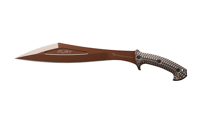 DoubleStar Fury: This is a fairly new company to the field of tactical cutlery, but its kukri-style Fury machete and Wrath combination crash/combat tomahawk are certainly unique weapons. The Fury provides a 10-inch blade of S7 carbon steel with G10 handles scales and a durable Kydex sheath.