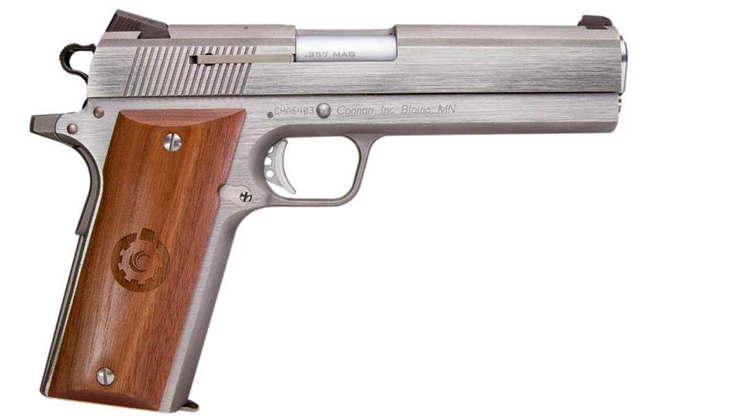 Once I arrived at my caliber of choice, the next logical step was finding the best vehicle. I told you earlier that the conversation usually circled around to the 1911. Well, what I hadn’t even thought of was how the .357 had an obscure cousin in the 1911 family developed by Dan Coonan. The Coonan website touts that he changed the handgun market with the introduction of his stainless-steel masterpiece, and I would have to agree.