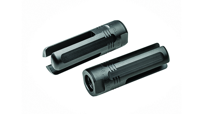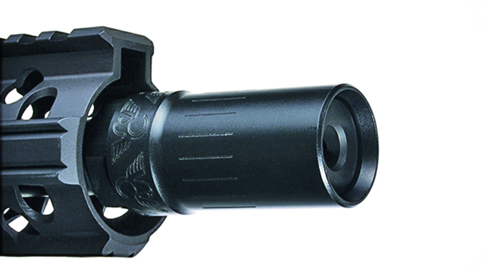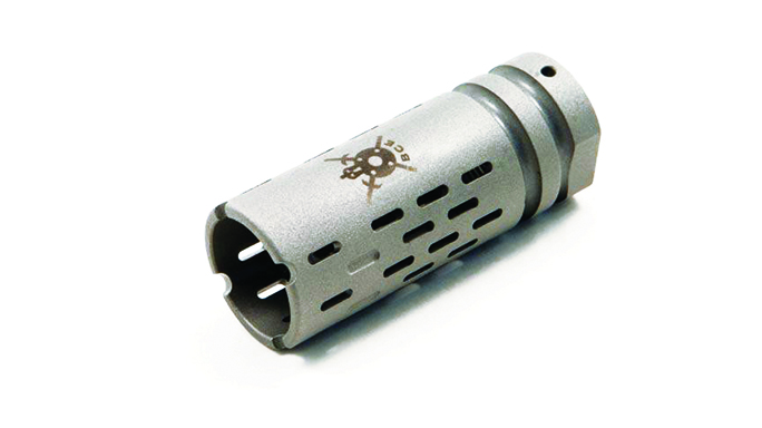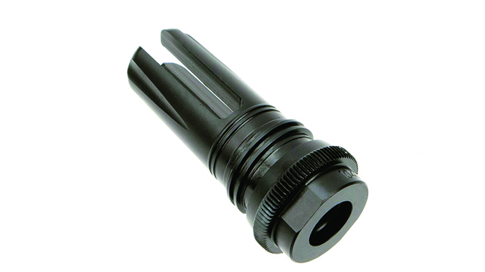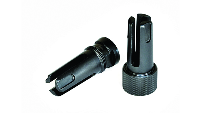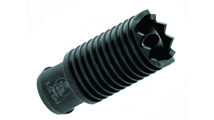 Smith Enterprise Vortex G6A2: The Vortex is the mainstay in Smith Enterprise’s lineup. It comes in many different variations—with or without fluting, suppressor or non-suppressor compatibility and the option of a pre-drilled hole for permanent installation. The new G6A2 model features Smith’s patented 15-degree helix, guaranteeing a complete propellant burn and negligible flash. The flute configuration is 40-percent stronger due to greater mass, and no washers are needed. The G6A2 also serves as a quick-connecting interface for Smith Enterprise’s M4DC CQB sound suppressors. The G6A2 is available in 5.56mm, 7.62mm and 6.8 SPC chamberings.