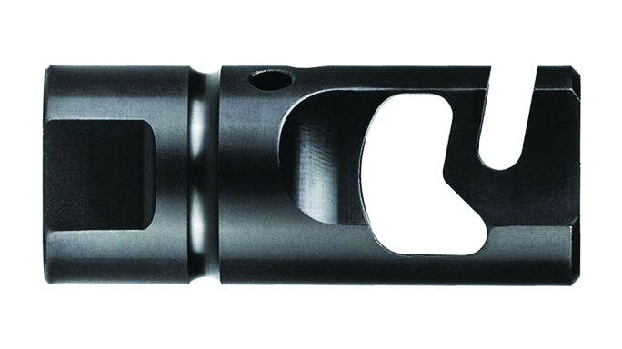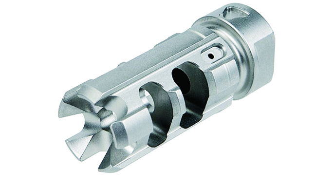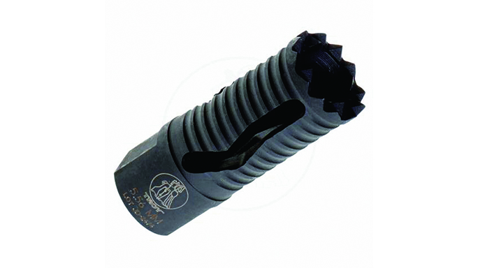 Primary Weapons Systems FSC556: A Primary Weapons Systems (PWS) signature product, the FSC556 couples flash suppression with muzzle control. The FSC556 is an ideal compensator for putting a high volume of rounds on target, and it’s also a mounting option for the Gemtech Halo suppressor. While the FSC556 is built for 5.56mm NATO rifles, .30 and .308 versions are also available from the company.