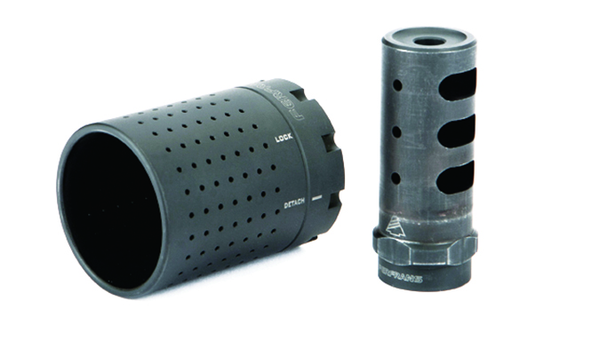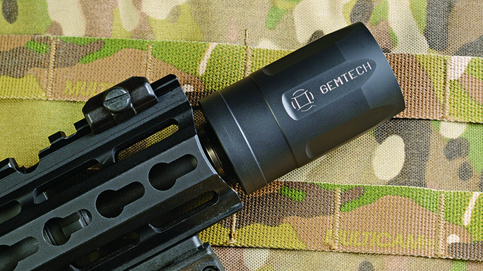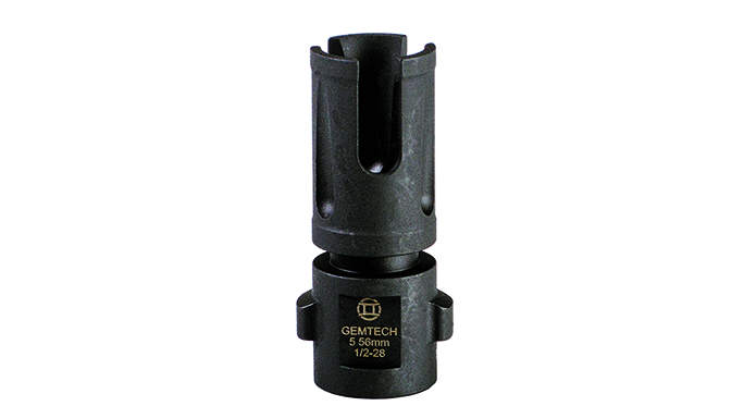 Gemtech Triad 5.56 Quiuckmount: Gemtech’s new Triad 5.56 Quickmount flash suppressor/suppressor adapter is the culmination of user feedback, extensive testing and decades of experience. It cut downs on carbon buildup in your suppressor and prevents it from getting stuck. Improvements include larger 0.75-inch wrench flats for installation, a blank-firing adapter (BFA) groove for increased suppressor options and training, more area behind the lugs for use on SBRs, an overall length of 2.4 inches for use on 14.5-inch barrels (pre-drilled for pinning) and an included precision-mounting shim kit.