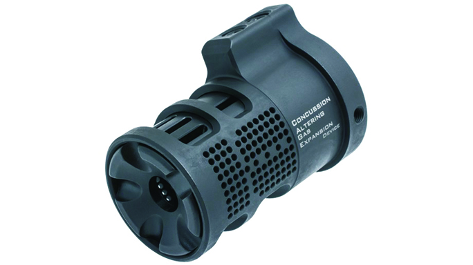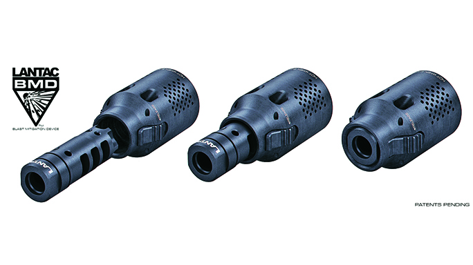 Lantac BMD: The Lantac Blast Mitigation Device, or BMD, slides over and locks onto the Lantac Dragon muzzle brake to redirect exiting gas and concussion. The BMD has vents and holes located directly above the Dragon’s ports, so not only does it direct concussion forward, but it also utilizes the effects of the muzzle brake.