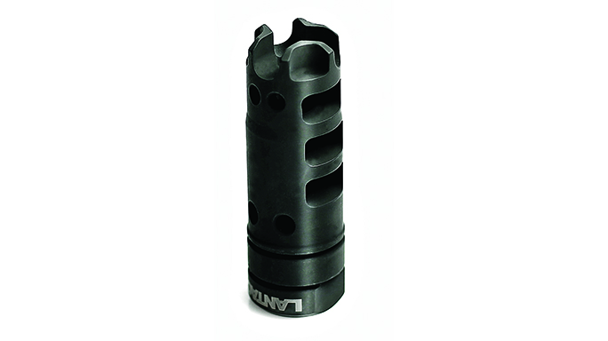 Lantac DGN556B Dragon: The Lantac DGN556B Dragon muzzle brake offers improved recoil management and muzzle rise for AR-style rifle. Its unique Short Energy Pulse system reduces the length of recoil so that repeating shot energy cannot overlap and knock the shooter off target. Full-auto fire is possible with massively reduced recoil and muzzle climb, meaning that all shots fall on target. Models are available for both 5.56mm and 7.62mm NATO rifles.