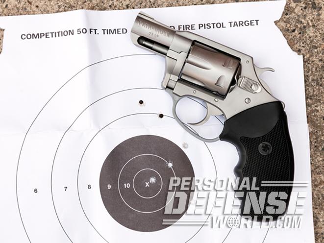 The Charter Arms Pathfinder is 100-percent American made. It has a 2-inch barrel and a fixed sighting channel. In spite of its rudimentary sighting equipment, the little gun shoots to its point of aim, and when fired single-action is capable of 3-inch groups at 25 yards. Its single action trigger breaks crisply at just 3 pounds (the double-action pull was too heavy to be weighed on my trigger scale). A safety bar transmits the force of the falling hammer to the firing pin only when the trigger is pulled. This prevents an accidental discharge if a cocked gun is dropped.