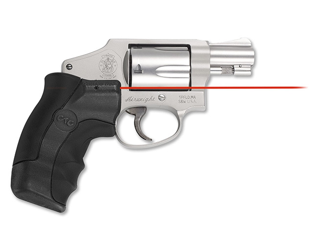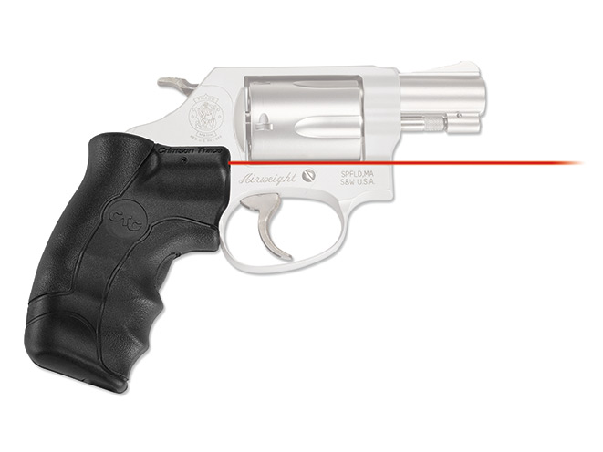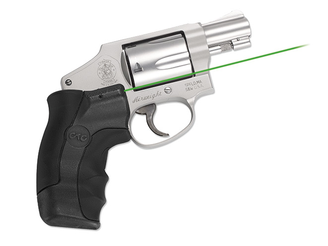 The latest in Lasergrips from Crimson Trace, which replace the grips on your gun, is the LG-350, which fits all Smith & Wesson round-butt J-Frame revolvers. These grips emit a bright green or red laser from the top right side of the grip. They also feature a new ShockStop recoil mitigation system that makes very lightweight revolvers much more comfortable to shoot. This grip is a lot larger than the factory grip, but the increase in comfort and accuracy is undeniable. (http://www.crimsontrace.com; 800-442-2406)