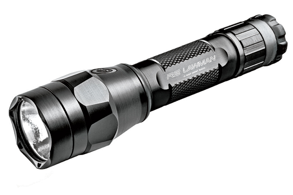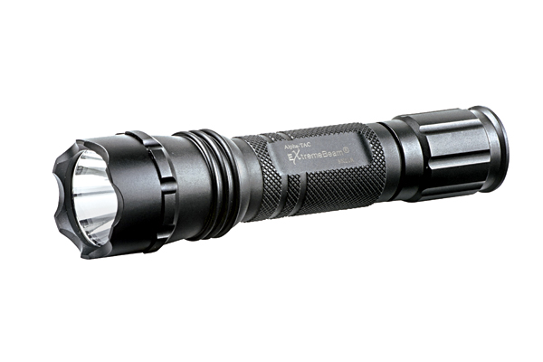 About the same size as the ExtremeBeam M4 is the SureFire R2 Lawman flashlight. The R2 has a maximum output of 800 lumens. It features a rechargeable battery, or you can use two disposable CR1213A batteries. A Variable-Output Control switch also helps sip power, allowing users to set the light output to meet the needs of the situation. The bezel diameter is 1.6 inches, and total length is 6.7 inches. The aluminum body is built to take (and give out) punishment.