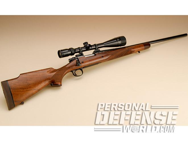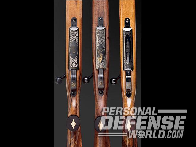First, you start out with roughly 50 cartridge choices, which can be anything from the petite .17 Rem Fireball upwards to the larger Magnum offerings like the .458 Win. You can choose a barrel length from 16 inches to 30 inches, right- or left-handed, iron sighted or clean. Metal finish can be bright or subdued, and the wood goes from Claro, American or English walnut. Classic or modern stock designs are there for the asking, forend tips in rosewood or ebony and the grip cap can be stylized to include rosewood, ebony, solid steel or even a skeletonized cap. Finish can be gloss or oil, and you can order a traditional buttpad in “Old English” or a skeleton-type plate. Length of pull is up to you, and you can even have a nameplate with your initials inscribed.