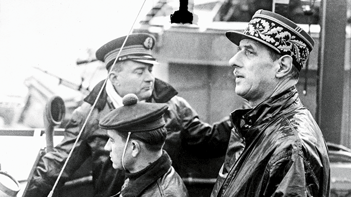 Few military or political leaders in history have been simultaneously as divisive and as unifying as Charles de Gaulle, the French general and statesman. He developed his military chops as a platoon commander in WWI, where he was wounded twice and captured at the Battle of Verdun. He was leading a tank brigade when WWII broke out, but he fled from France to England when Field Marshal Philippe Petain, the head of the new Vichy government, signed an armistice with Germany. With the support of British Prime Minister Winston Churchill, de Gaulle formed the Free French Forces and broadcast a message across the English Channel urging the French people to resist the occupiers. De Gaulle was a difficult ally for Churchill and U.S. President Franklin Roosevelt, thanks to a combination of his arrogance, fierce nationalism, and strong sense of mission. Churchill tried to remove him as head of the French resistance, while FDR refused to recognize de Gaulle’s provisional government until 1944. De Gaulle moved his headquarters to Algiers in 1943 so he could direct the provisional government on French soil. By agreement with Eisenhower, French troops were the first to enter Paris to finish off the Germans, and de Gaulle, viewed as the liberator, was greeted as a national hero. De Gaulle became president of France’s Fourth Republic, though due to his spat with Allied leaders he was not invited to participate in the summit conferences in Yalta and Potsdam. He never forgave Roosevelt, Churchill, or Stalin for the slight.