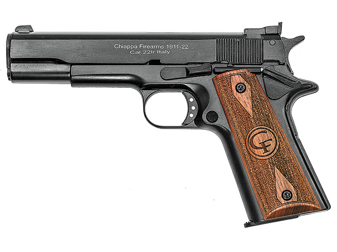 Produced in Italy and available here in the United States through Chiappa Firearms, the 1911-22 Target pistol in .22 LR delivers a modern-style 1911 ready for precise target shooting. Combining classic styling cues such as a standard safety with enhanced upgrades like a fully adjustable rear sight unit, the 1911-22 Target features an attractive matte black finish with polished sides on the slide. The pistol itself is constructed from a combination of what the company terms “Chiappalloy” and steel, resulting in a weight of 33.5 ounces that is comparable to a true centerfire 1911.