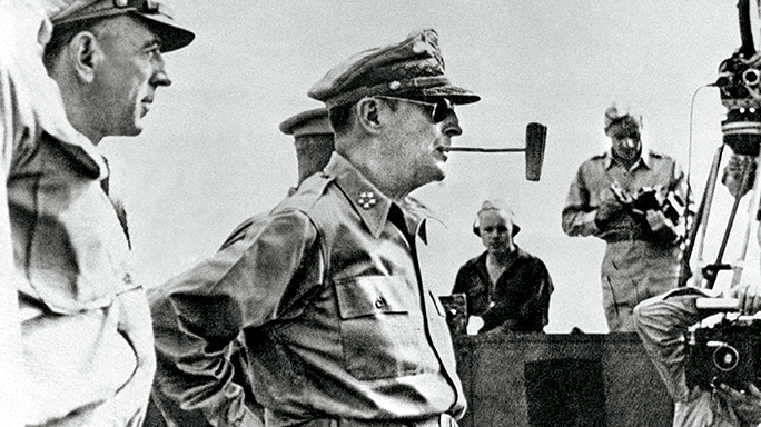 Gen. Douglas MacArthur was 60 years old and retired from the Army in July 1941. But with Japan rattling sabers of war, MacArthur was recalled to active duty and named commander of U.S. Army forces in the Far East, thanks to extensive past work with the Philippine military. Following the attack on Pearl Harbor, the Japanese staged a surprise assault on the Philippines, destroying MacArthur’s air force and compelling MacArthur and a select group of family and officers to flee to Australia. Marshall awarded MacArthur the Medal of Honor, not for acts of valor, but to “offset any propaganda by the enemy directed at his leaving his command.” MacArthur developed a campaign of island-hopping, attacking Japan at key strongpoints, and in 1944 he returned to the Philippines after defeating the Japanese at Iwo Jima and Okinawa. As Supreme Commander of Allied Forces in the Pacific, MacArthur accepted the Japanese surrender aboard the USS Missouri. He was later put in command of the U.N. forces after North Korea invaded South Korea, but he was relieved of duty after publicly criticizing the policies of President Harry Truman.