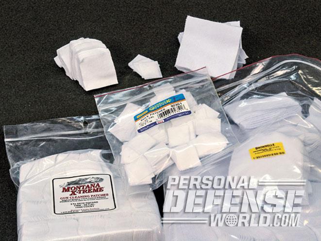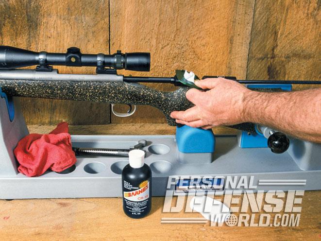 I start with a bore solvent that will remove both powder fouling and copper fouling. I make several passes using a new wet patch each time. Don’t scrub, but instead push the patch straight through the bore. You may want to let the gun soak a few minutes between patches to allow the solvent to work.