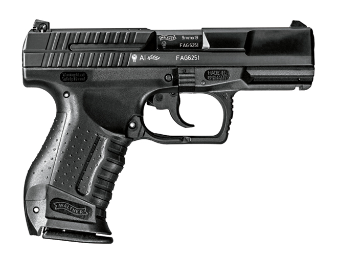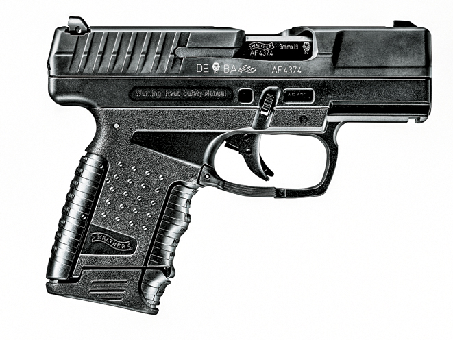 As a concealed-carry sidearm, the PPS ventured into territory previously occupied by smaller-caliber semi-autos. Introduced in 2008, the PPS with its 3.2-inch barrel can almost hide behind a PPK/S, yet it fires the more powerful 9mm round. The standard magazine holds seven rounds, the same as a .380-caliber PPK/S. The PPS measures just 0.9 inches in width and the overall length is 6.3 inches with a compact height of 4.4 inches. The PPS employs a variety of P99-based technology, including a polymer frame, an ambidextrous magazine release built into the triggerguard and interchangeable backstraps. Also a striker-fired design, the PPS uses a blade trigger safety like the P99QA and PPQ M2, with an average trigger pull of 6.8 pounds. The PPS is as compact and as well-designed as any Walther pistol ever produced.