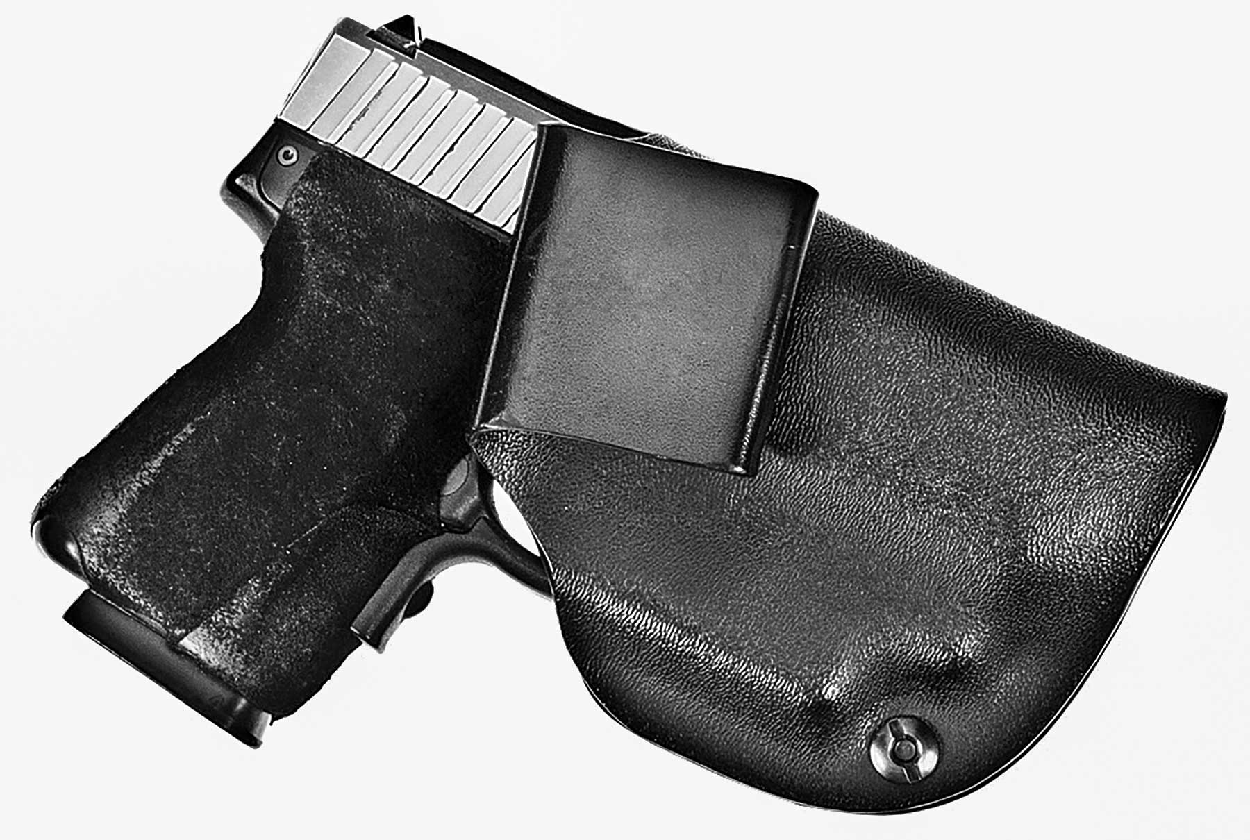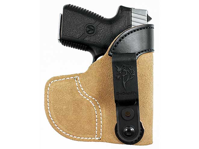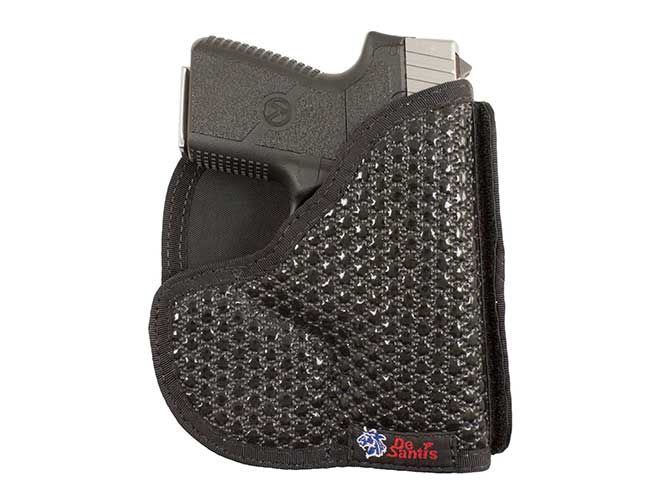 The Super Fly is a pocket holster that has a very tacky surface which helps grip the inside of your pocket. Unlike a Kydex or nylon pocket holster, the Super Fly will stay in place while drawing your pistol. Another unique part of the Super Fly is a removable flap that further disguises the shape of the pistol. This Velcro flap puts any worries of printing to bed. The outline-busting flap is also covered in the same tacky surface. Carrying a retail price of $40, the Super Fly is a great value considering the innovations it offers. (800-424-1236; desantisholster.com)