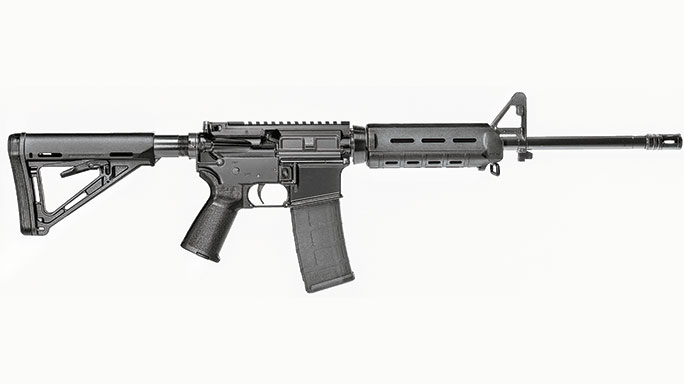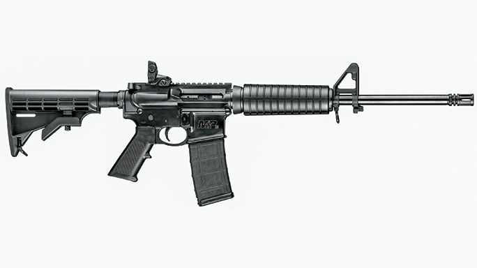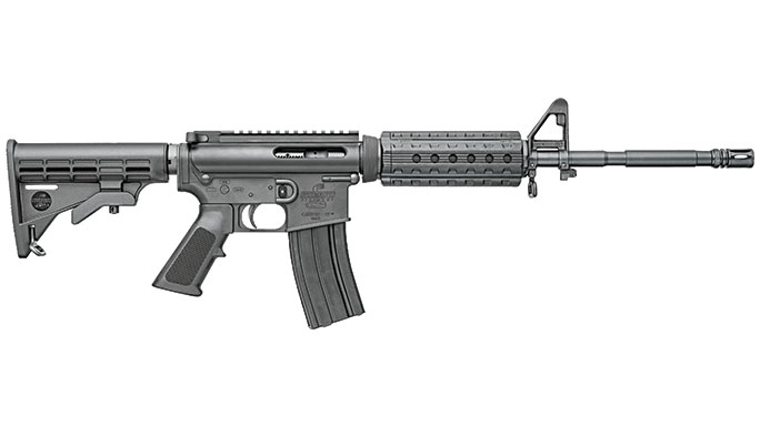 Smith & Wesson M&P15 Sport: Many officers already carry a Smith & Wesson M&P handgun in their duty rig, so adding an M&P15 rifle to the patrol car can make a lot of sense. These direct-impingement guns have A2-style front sights and Magpul MBUS folding rear sights. A Picatinny rail allows shooters to add glass as well. Magpul also provides the 30-round magazine that ships with the rifle. The MSRP is $739.