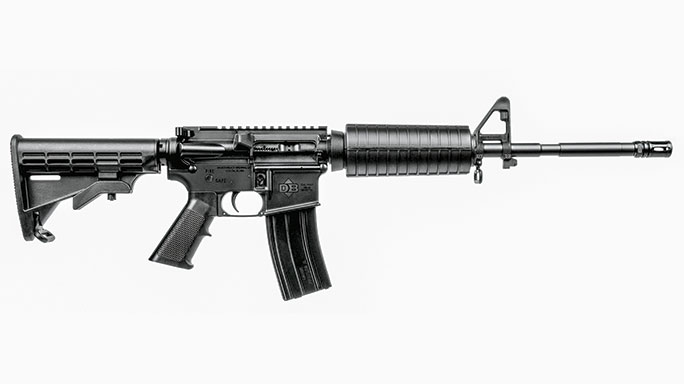 Diamondback DB15SB: A relative newcomer to the duty rifle market, Diamondback manufactures solid AR-15 carbines at a very affordable price. Both the upper and lower receivers are forged from 7075-T6 aluminum, with the upper being an A3-style flattop unit. The 16-inch, chrome-moly barrel is topped with an A2-style flash suppressor to reduce the rifle’s flash signature reduction when fired at night. The MSRP is $756.