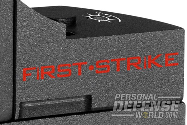 Bushnell’s First Strike weighs less than 2.5 ounces. It offers a 50-MOA dot reticle that automatically adjusts brightness to lighting conditions. Powered by one CR2032, the battery is common and easy to obtain. An integrated photocell automatically turns the unit on when the protective lens cover is removed. There is no power switch. The First Strike is waterproof and fog proof, and it is also built with a lightweight alloy that is shockproof.