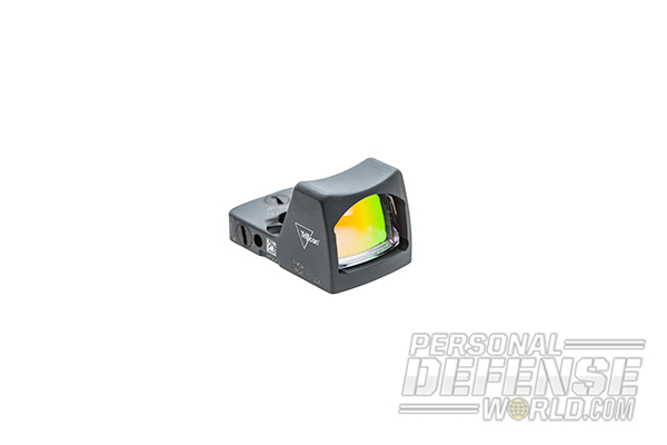 Two design philosophies address mounting a reflex sight on a pistol. The first is to machine the rear section of the slide and attach the reflex sight directly to the slide. This method includes keeping the iron sights, but mounting a taller front and rear sight to clear the reflex sight, similar to the taller iron sights used with a suppressor. The second way to attach a reflex sight is to attach a mounting plate in the rear sight dovetail of the pistol slide. The reflex sight is then mounted to the plate. In either configuration, an operator will find that a reflex sight offers faster target acquisition. Here’s a look at some current reflex sights available.