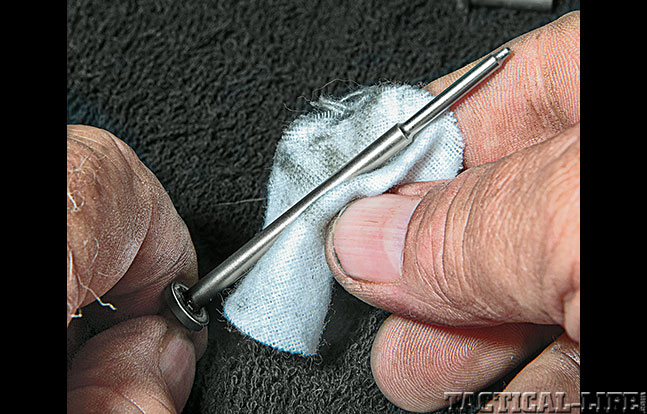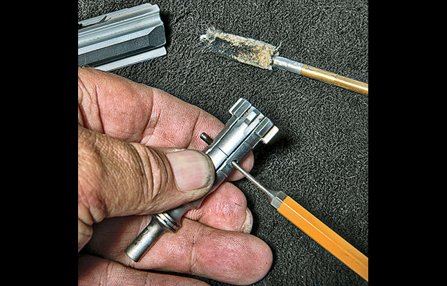 If you are cleaning a piston rifle you will not see gas rings or a gas key. An op rod may be attached to the bolt, or it will be a flat spot where a rod strikes it. If there are gas key bolts make sure they are staked and have not come loose. Some are machined into the bolt, so you just have to check. Make sure you follow your manufacturer’s instructions when it comes to gas piston tubes (where the piston goes). In most cases these are seldom cleaned and often work better when fouled—get carried away here and your gun may not run. Everything else should be pretty much the same.