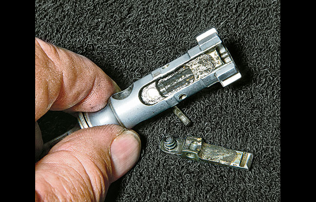 If necessary, the bolt can be broken down for further cleaning and inspection. Leave the ejector alone. Don’t remove it unless you are experiencing problems with ejection, or if it is stuck or broken (a very rare occurrence).