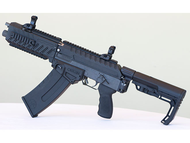 This 12-gauge semi-auto uses a long-stroke gas piston operating system based on the AK-47, but with an infinitely adjustable gas system that allows shooters to tune the gun for heavy and light loads (2¾-inch shells only) in the field. It also has a quick-change barrel and feeds from detachable five-, eight- or 10-round stick mags as well as 20- and 30-round drums. The Origin 12 has a left-side-folding stock that reduces the gun to down a compact 28 inches. The safety, bolt catch and mag release are ambidextrous. (http://www.fostechoutdoors.com; 812-445-4028)