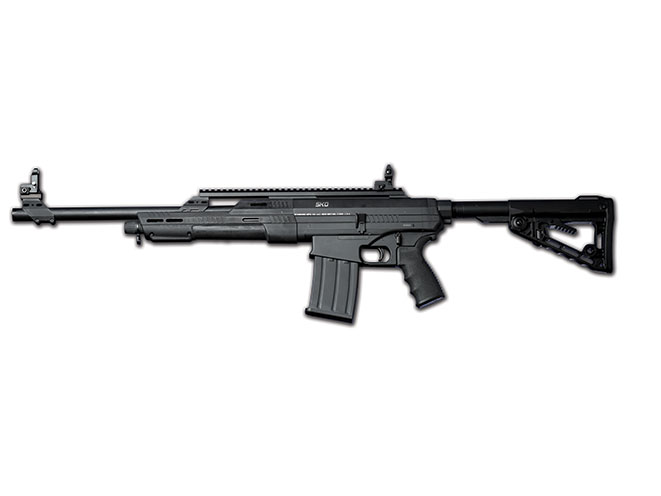 Standard Manufacturing, famous for its innovative DP-12, will soon release its new SKO-12 and SKO-BULL (the bullpup variant). These gas-operated semi-auto shotguns have 18.5-inch barrels and feed from detachable box magazines that come in five-, nine- and 15-round capacities. The SKO-12 has an ambidextrous safety and a reversible charging handle. Both models have flip-up sights. (http://www.stdgun.com; 860-225-6581)