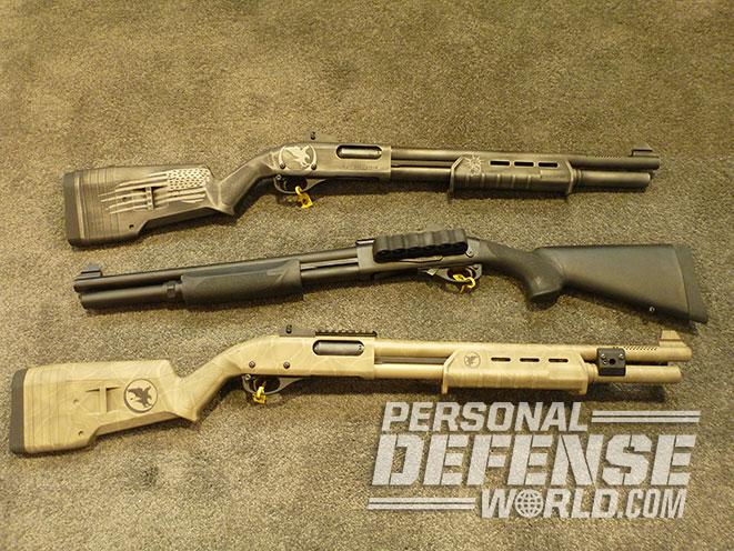 Nighthawk Custom is best known for its custom-made 1911 pistols, but the company also offers upgraded Remington 870 tactical shotguns. Customers can send in their old gun for an overhaul/upgrade or buy a new gun directly from Nighthawk. Customers can select their own upgrades from a menu that includes Magpul tactical stocks, extended-capacity magazines, iron sights, breaching devices, receiver rails for mounting optics, and trigger and action jobs that make cycling smoother and quicker. Several finishes are also offered from the ordinary to the unusual. (http://www.nighthawkcustom.com; 870-423-4867)