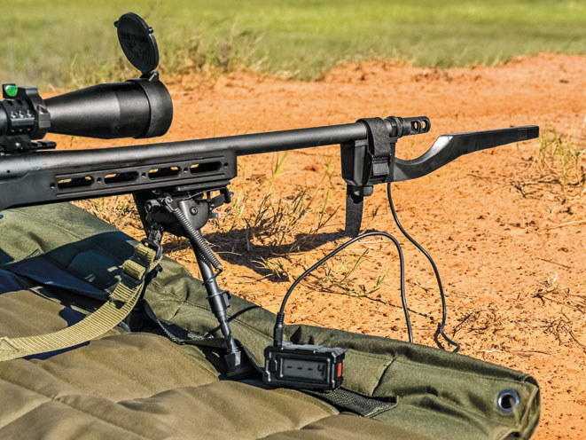 MagnetoSpeed offers the only barrel- mounted ballistic chronograph, which makes this unit incredibly lightweight and compact. Unlike other chronographs that use light sensors to measure velocity, the MagnetoSpeed uses electromagnetic sensors for extremely accurate readings. These sensors are completely resistant to muzzle blast and are not reliant on ambient lighting conditions. Although designed specifically for rifle use with barrels between 0.5 and 1 inches in diameter, the unit will also fit on long-barreled revolvers. (http://www.magnetospeed.com; 512-284-8161)
