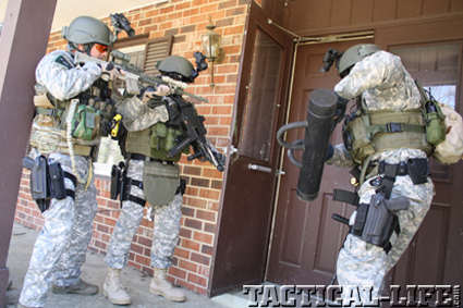 More specialized gear includes remote cameras for observation and various door breaching devices, as well as 40mm gas launchers. Currently, only SWAT is issued and is certified to use Tasers, which the team has put to good use on more than one occasion.