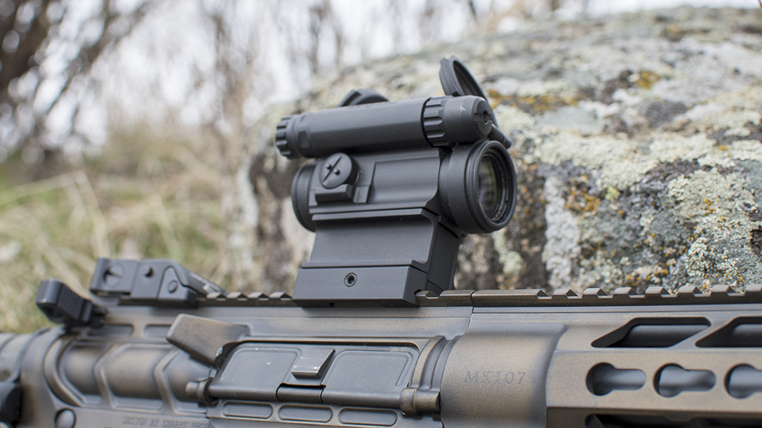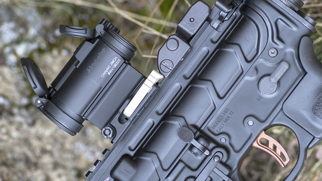 Rather than a harder-to-find watch- or camera-type battery, the CompM5 utilizes a commonly found AAA battery; that’s another first for Aimpoint.