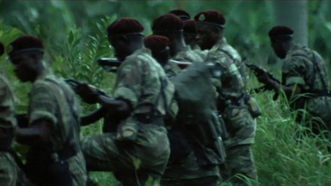 In one particular scene, the Nigerian troops line up abreast and fire into the jungles as they walk through elephant grass. Though they manage to kill a few SEALs, they are no match for the close air support that comes in the form of an F/A-18 Hornet that torches them in the final scene on the Cameroon border.
