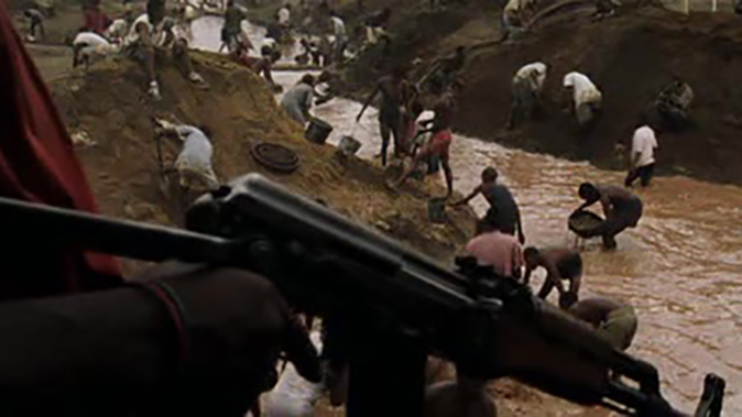 Also used to force labor in the diamond mine pits, the Norinco 56-1s are unquestionably the tools of evil people. The film also features Type II and Type III AKs, RPG-7s, and a Mi-24 “SuperHind” gunship.