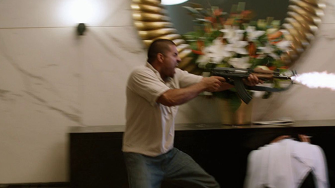 The poster for “The Devil’s Double” features gold-plated Tabuk AK-47s. AK rifles are featured heavily throughout the film.