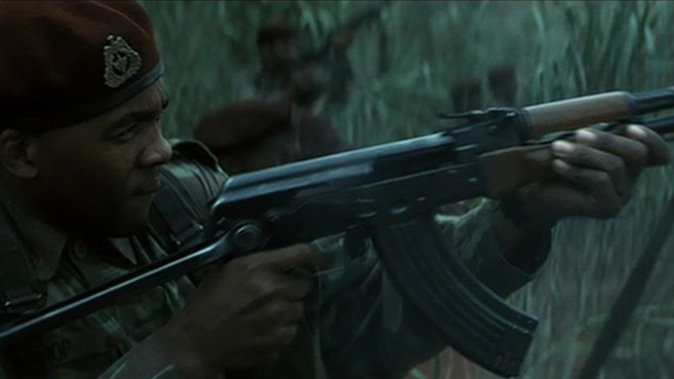 The film’s protagonist, Danny Archer, a former Rhodesian soldier played by Leonardo DiCaprio, wields an AK in multiple scenes against similarly armed enemies, fighting to save a small boy and his father from the bad guys while recovering a large diamond.