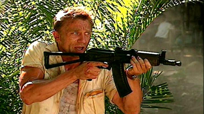 The current Bond, Daniel Craig, appears to prefer non-Eastern-Bloc weapons in his three appearances but can be seen wielding an AK in “Lara Croft: Tomb Raider.”