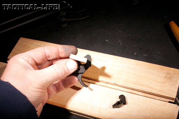 The goal is to smooth out the hitch at the beginning of the pull and change the amount of travel for the disconnector, allowing it to contact the back of the trigger before the trigger sear lets off. This situation creates a “wall” when pulling the trigger, producing resistance the instant before the sear disengages. In essence, I would be creating a two-stage trigger.
