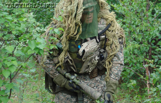 Deep in the old growth of the Matanuska-Susitna Valley in south-central Alaska, the Alaska State Trooper (AST) sniper, wearing a full ghillie suit and armed with a Remington 700P LTR rifle, paused next to a tree scarred by the antlers of rutting moose. I accompanied the AST sniper, who was looking to find an overwatch position in response to a reported hostage situation in a house located deep in the Alaskan wilderness. Sometimes sinking up to his knees in the layers of brush, ferns and leaves from the ancient trees towering a hundred feet above the forest floor, the trooper alternated between moving and stopping to listen.