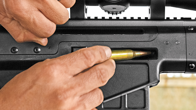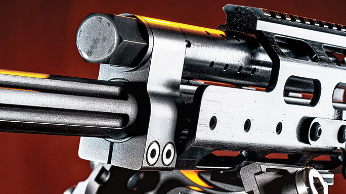 Another special feature is the rifle’s adjustable gas piston operating system. The gas block is made of casehardened 8620 steel while the carrier, bolt and extractor are all made from 17-4 precipitation-hardened stainless steel. The recoil springs are rated for 6 million cycles. The twin ejectors are crafted from S7 tool steel, and the locking lugs are made from hardened 8620 steel. A large charging handle is mounted on the right side of the receiver.