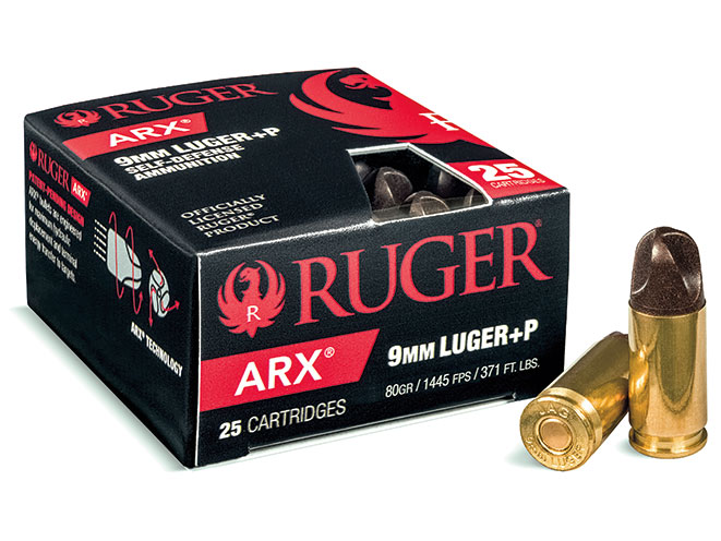 Ruger’s highly popular ARX ammunition series features extremely unique rounds that dispense with the traditional hollow point design in favor of a twisted flute design. The ARX design transfers energy through a hydraulic displacement effect in a fluid or semi-fluid target. Each groove on the bullet pressurizes and laterally ejects fluid matter, creating a wound channel and negative acceleration. The net effect is a bullet that transfers energy as effectively as a hollow-point, without the potential for failure due to non-expansion. The round is made from a non-frangible copper-polymer blend that will penetrate intermediate barriers but reduces the risk of ricochet against solid objects. (http://www.ruger.com)