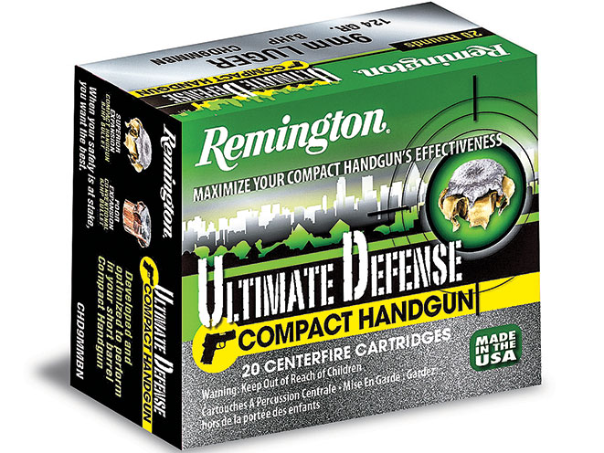 Remington makes one of the classic law enforcement bullets, the Golden Saber, which includes a few features that were ahead of their time and that now generally feature on the company’s Ultimate Defense line: waterproof sealing around the primer and case mouth, and a jacket constructed of a similar kind of brass to that used in cartridge cases. Remington’s much newer Ultimate Defense line includes the Compact Handgun line (designed to provide reliable terminal performance at the expected lower velocities generated by the shorter barrels in compact handguns), Ultimate Home Defense (designed to limit over-penetration in an occupied structure) and High Terminal Performance (a +P load that crosses over from defense to limited hunting and other heavy-duty applications). The company also has more economy-priced JHP loads in its UMC line in 50-round boxes. (http://www.remington.com; 800-243-9700)