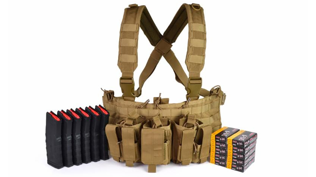 The Condor Tactical Ready Rig comes in coyote tan, black, or OD green. In addition, it’s available in a six-mag, 200 round setup, and a three-mag, 100-round configuration. MSRP starts at $96.39 and runs up to $163.49, depending on what you choose.