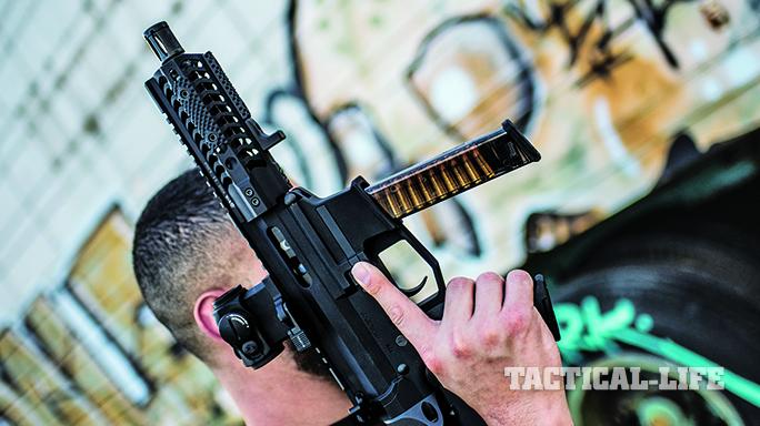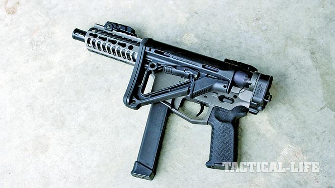 The UDP-9 SBR is a serious contender for those who want a PDW in a readily available caliber that uses the same magazines as their sidearm. This weapon is well designed and manufactured with tightly fitted parts, and it comes with high-quality stock and grip options. In the SBR format with a side-folding stock, its design is perhaps the zenith of the currently available AR-style carbines that use Glock magazines.