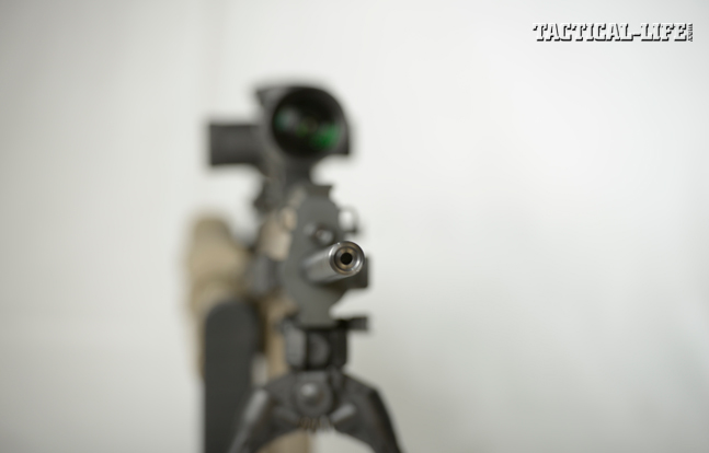 For my intended application as a sniper training rifle at 300 yards or less, I selected the 1.8-10X U.S. Optics MR-10 scope with a mil-scale GAP reticle and 0.1-mil EREK turrets. The scope allows for short-range dynamic training at 1.8X and also complex target ID exercises at 300 yards and beyond on 10X magnification. Adding to this, its EREK turret is second to none. In fact, Hensoldt uses a U.S. Optics-patented turret system on its flagship 3.5-26x56mm tactical scope—a scope that is, to my knowledge, the most expensive sniper scope available. The Barrett 10-40 rings I used may be overkill, but they are rock solid and lighter than most.